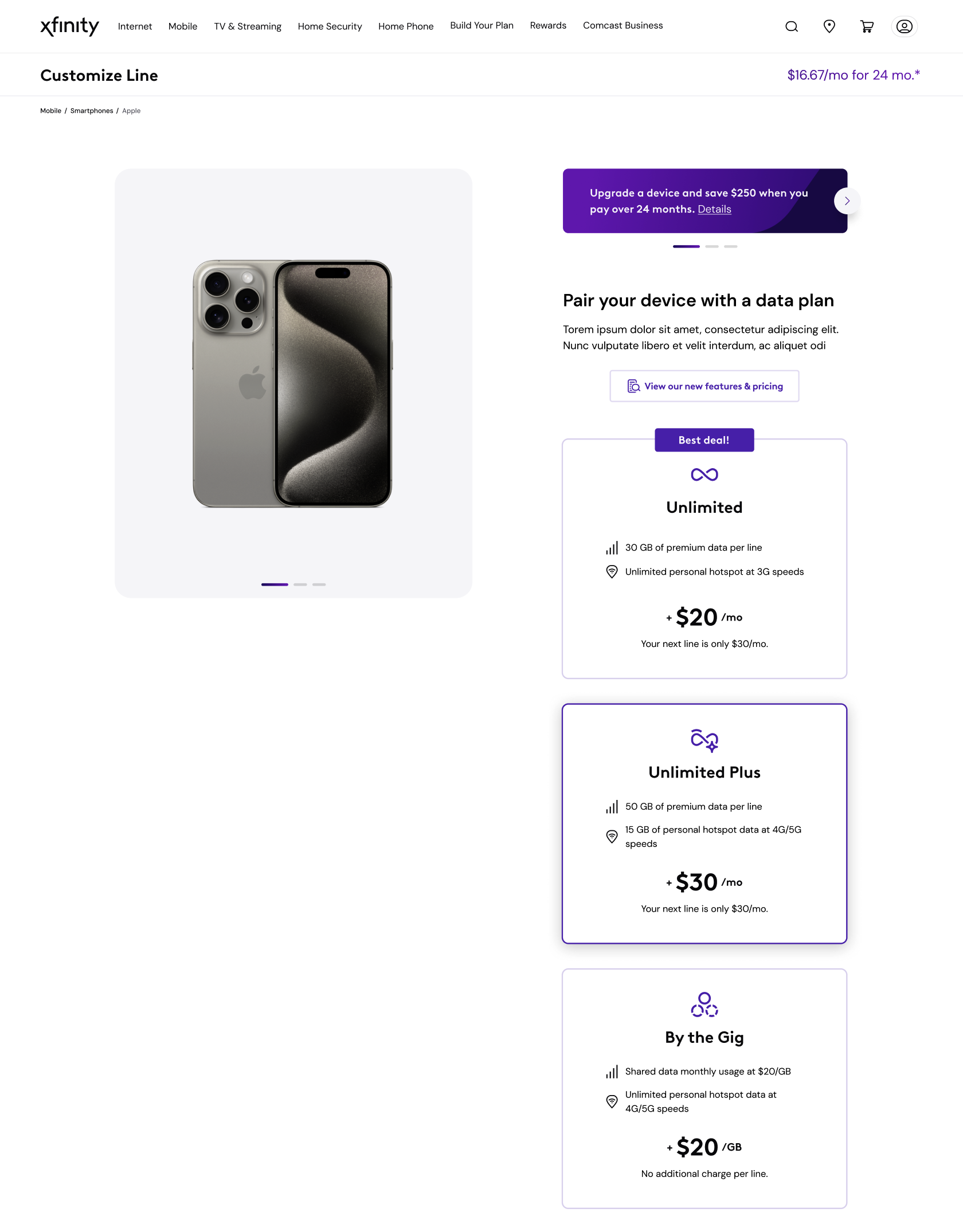 We further enhanced the experience by incorporating new functionalities: increased sorting and filters, shopping first with a Bring Your Own Device option & IMEI compatibility checks, and a streamlined upgrade path for existing Xfinity Mobile customers entering our site from marketing campaigns.